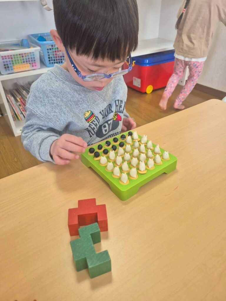 個別学習チームとロング散歩チームに分かれて活動をしたよ!個別学習チームは歩いてGOGO行って学習してきたよ!2つ、3つ以上の名前を聞いて覚えてカードをとったんだ!