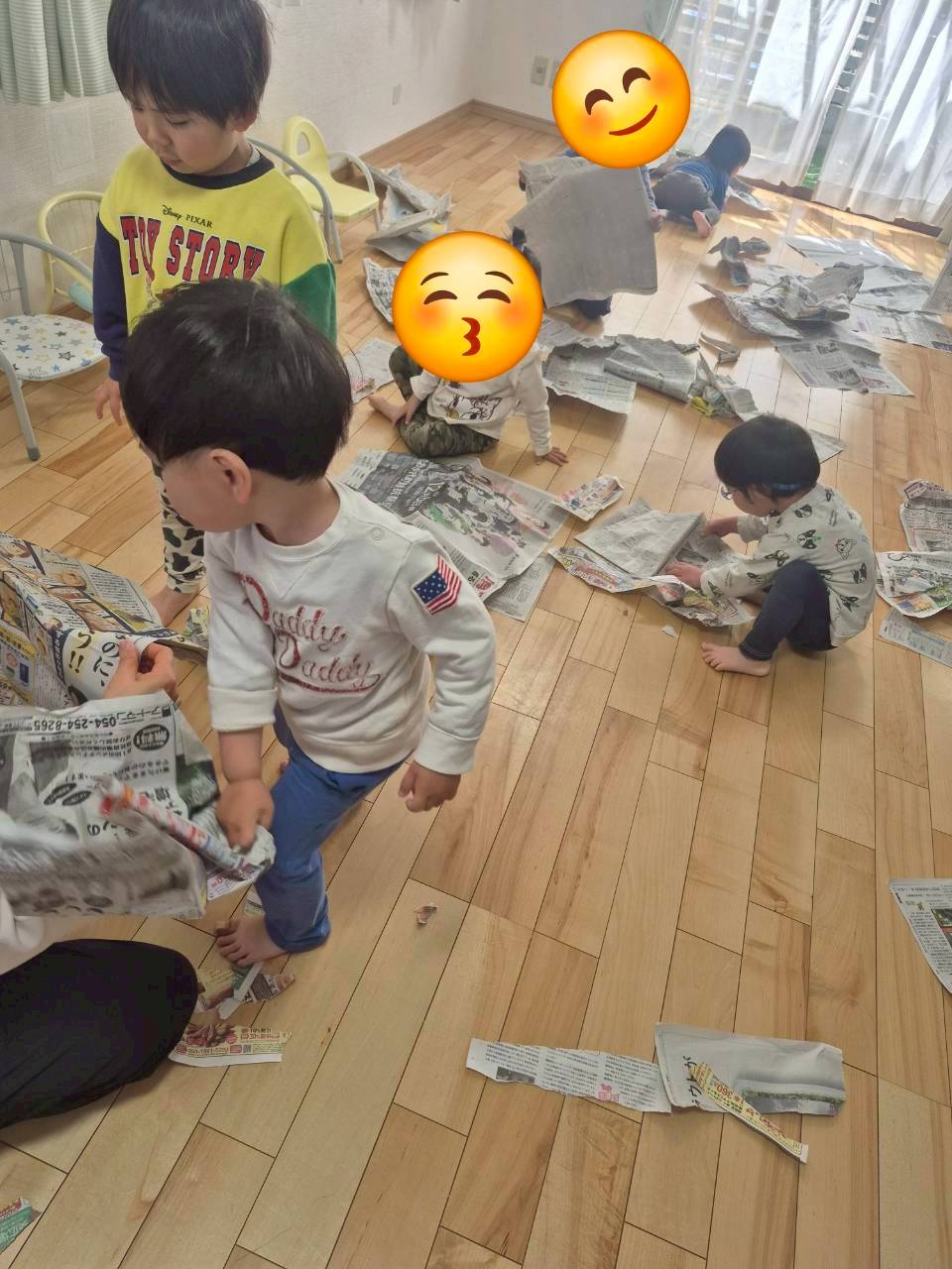 あんず・・・新聞ビリビリ遊び、お散歩、午睡