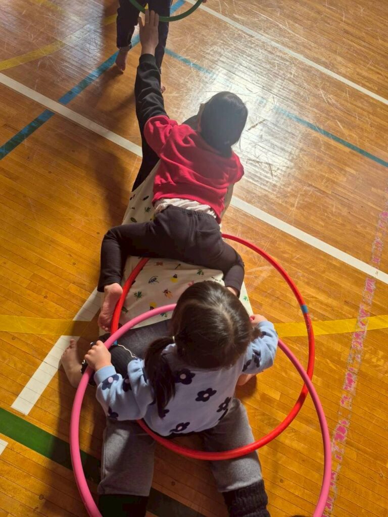 今日は、みんなで飯田体育館へ行ってきたよ!!4点走をしたり、リング追いかけ取りをしたよ。リングの動きをしっかり目で見て、キャッチ!とっても上手に出来ていたね。最後にボール遊びをしたよ(^▽^)/