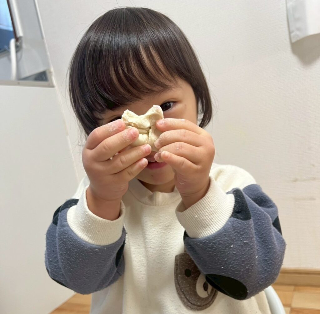 今日はリトミックをしたよ!!音が鳴ると自然に身体が動くね♬シーツそりもしたんだ!!順番守って楽しく出来たね!!小麦粉粘土も楽しかったね♬何ができたかな??色のついた粘土を使ってカラフル粘土の完成!!