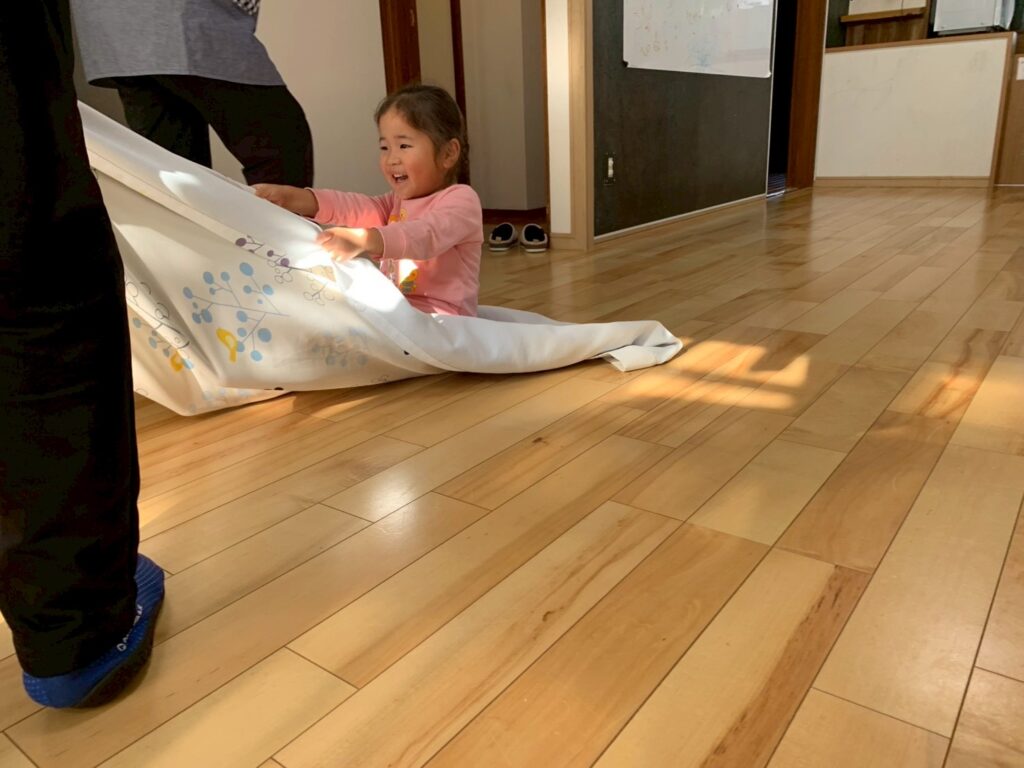 あんず・・・リトミック・シーツそり・小麦粉ねんど・午睡