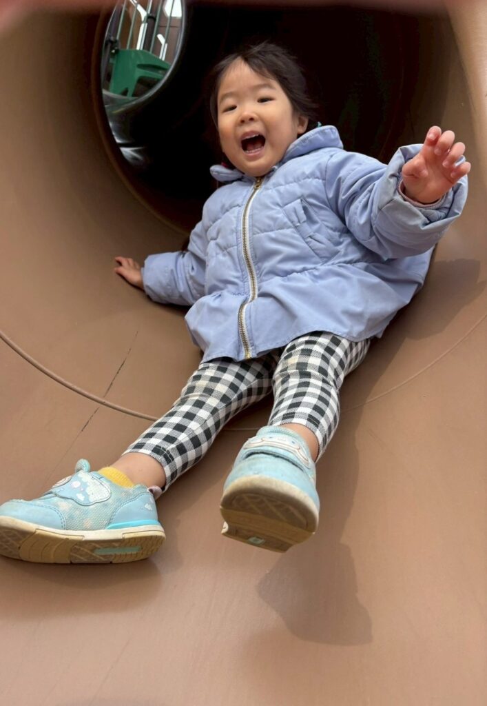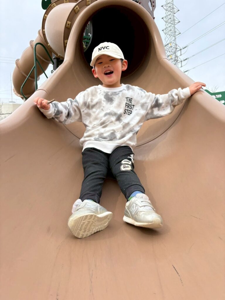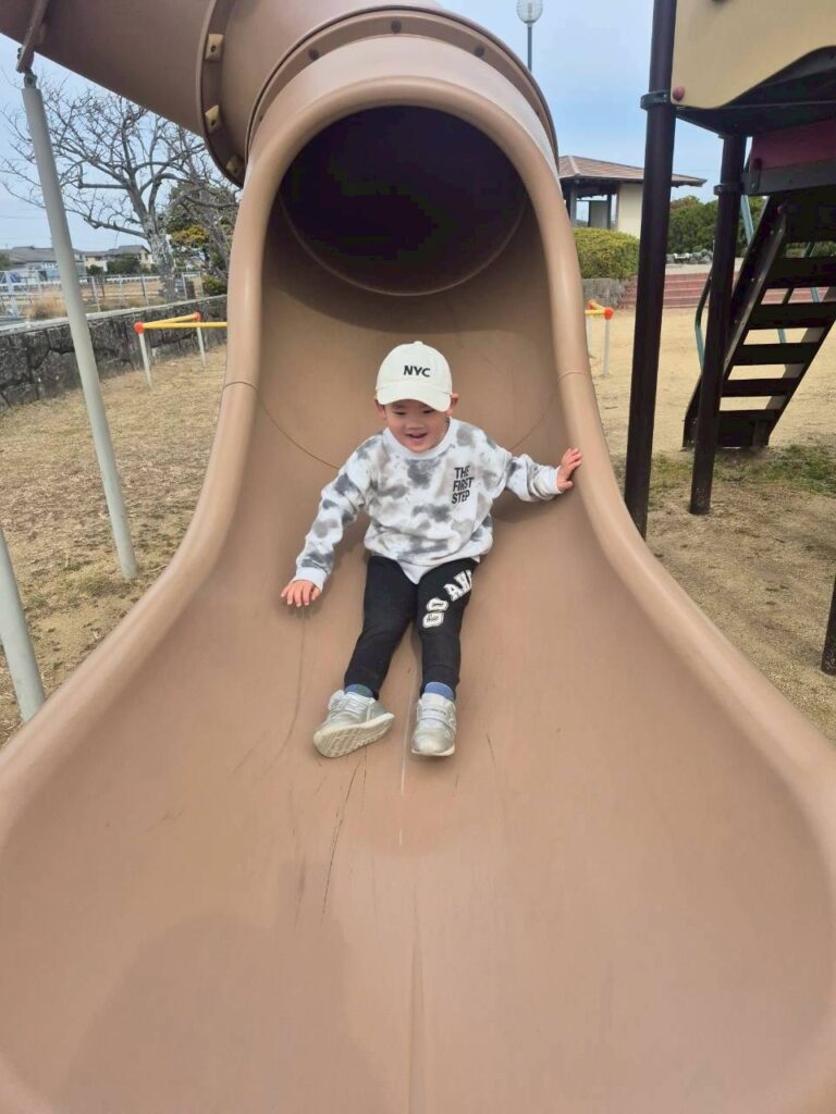 豊岡公園に行ってきたよ!!大きなすべり台がとっても楽しかったね♬段差が高かったけど頑張って登ったよ!高い所からのすべり台はいい眺めだったね☻