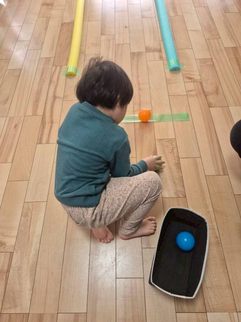 もも組・・・室内サーキット・新聞ビリビリ・プラレール