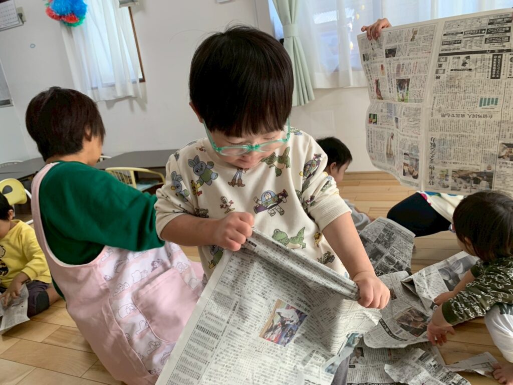 今日は近くの公園までお散歩ロープで行ってきたよ!公園では1番にすべり台、2番に揺れるジャングルジムくぐり!順番通りできたよ!お友達が頑張っているのを座って待つ事が出来たよ♪POPOに帰ってきたら今度は新聞ビリビリ!丸めて投げたり細かく破ったり🎶お片付けも頑張ったよ!!