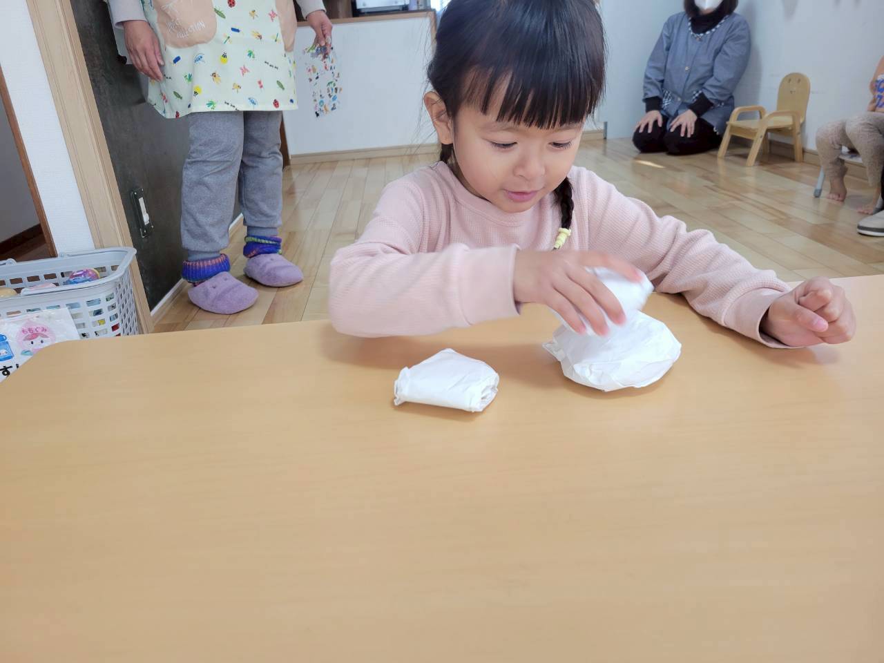 あんず・・・お正月サーキット(ジグザグ歩行、お餅積み、みかん引き)・初詣(津島神社)・午睡