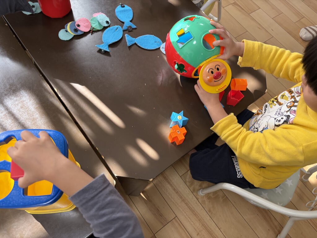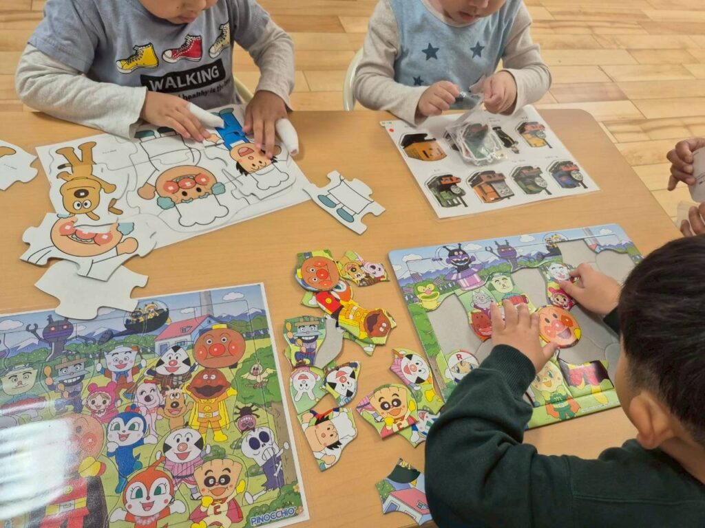 コーナー学習(パズル・お絵描き・手先)では自分の好きなものを選んで行いました。約20分各コーナーで楽しく学習できました◎