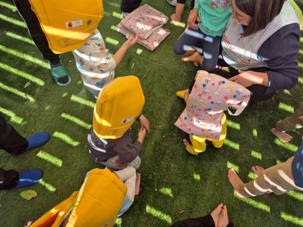 みんな職員の手引きで外に逃げることができました。防災頭巾も嫌がることなく被ることもできました◎