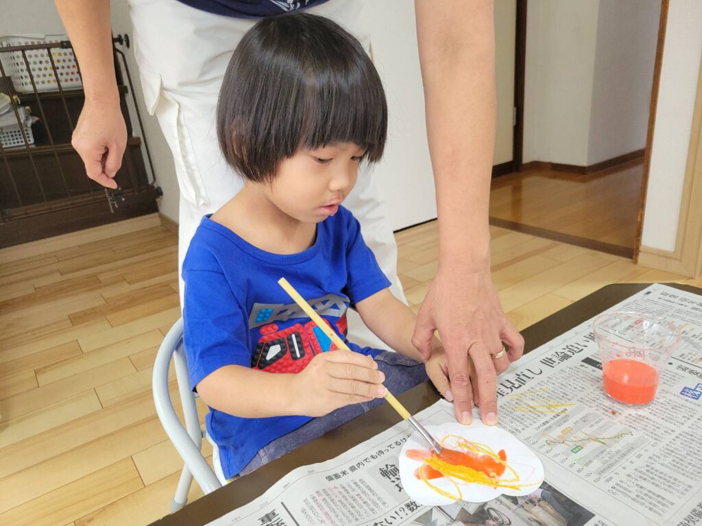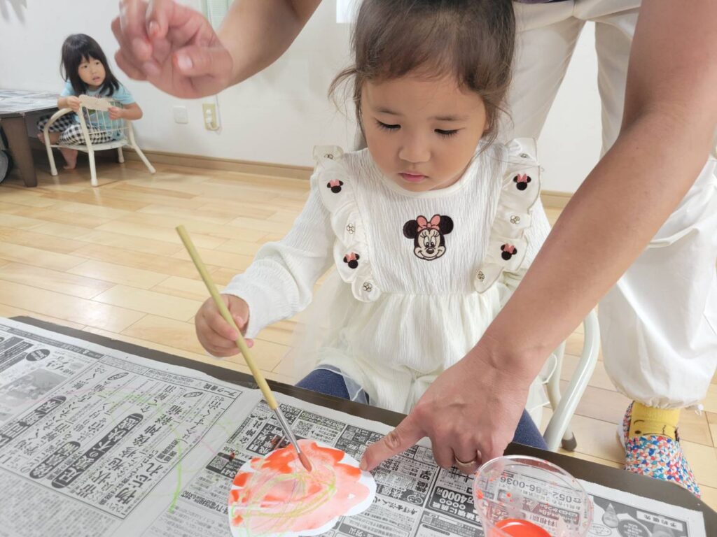 もも・・・ハロウィン製作(絵の具)・コーナー遊び(プラレール、魚釣り、バランスストーン)