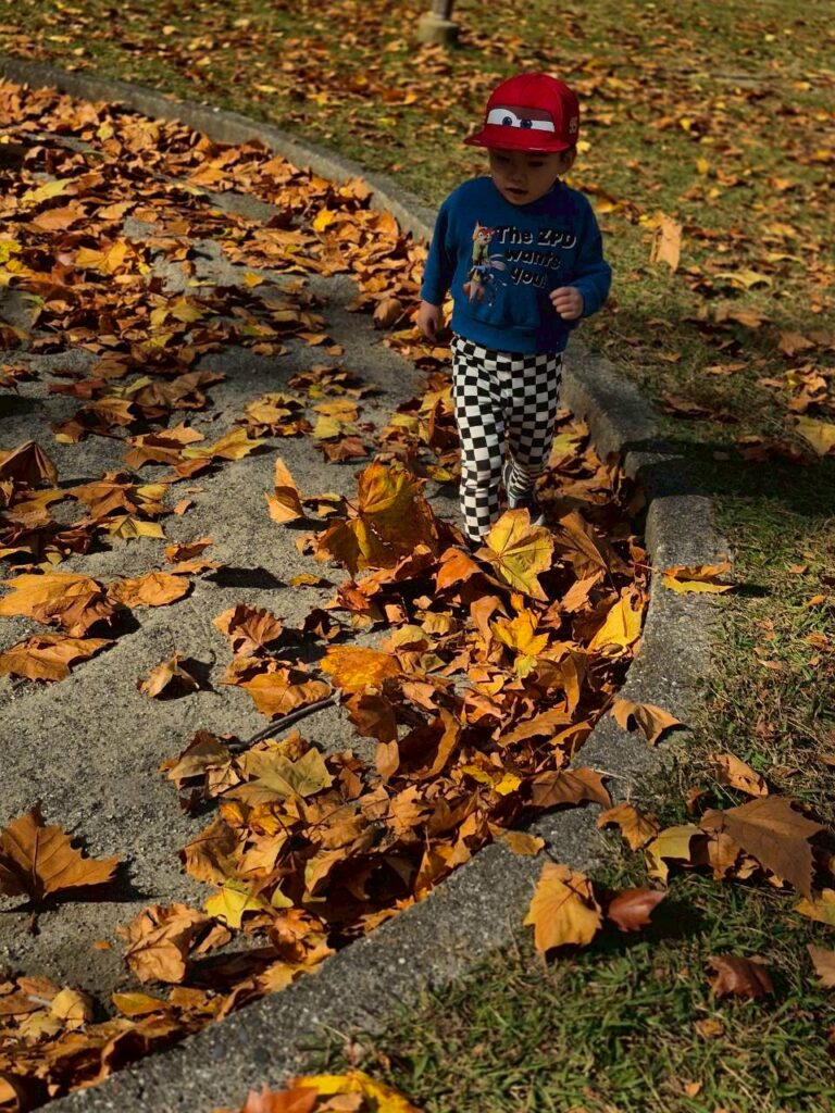 しっぽをとったよ!たくさんの落ち葉の中をかきわけるように歩いたりして、おもしろかったな!個別参観ではお母さんの所までゴールできたよ!