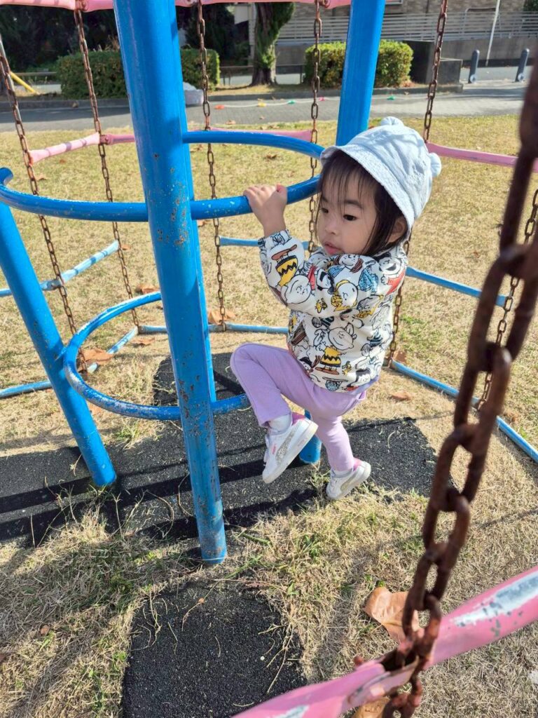 すべり台では、順番に並んで滑れたよ!スプリング遊具にも足を掛けて挑戦してみたよ!寒さに負けず元気にあそぶぞ=!