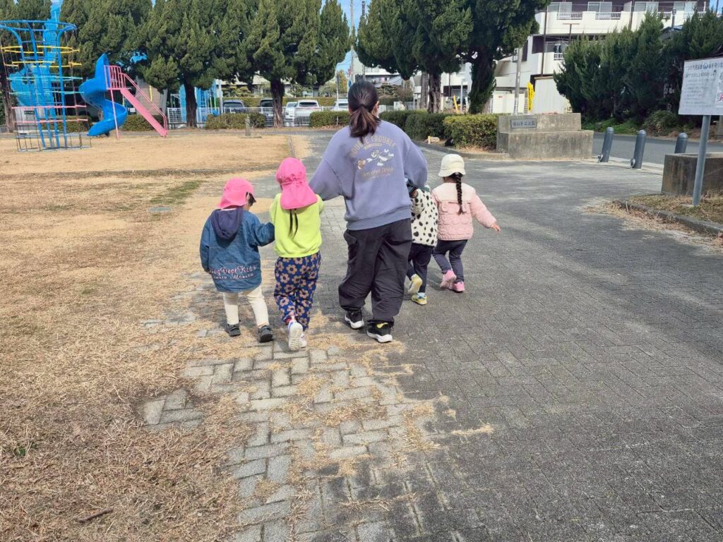 近くの公園に行ってきたよ。お友達や先生と何周もかけっこしたり・・・