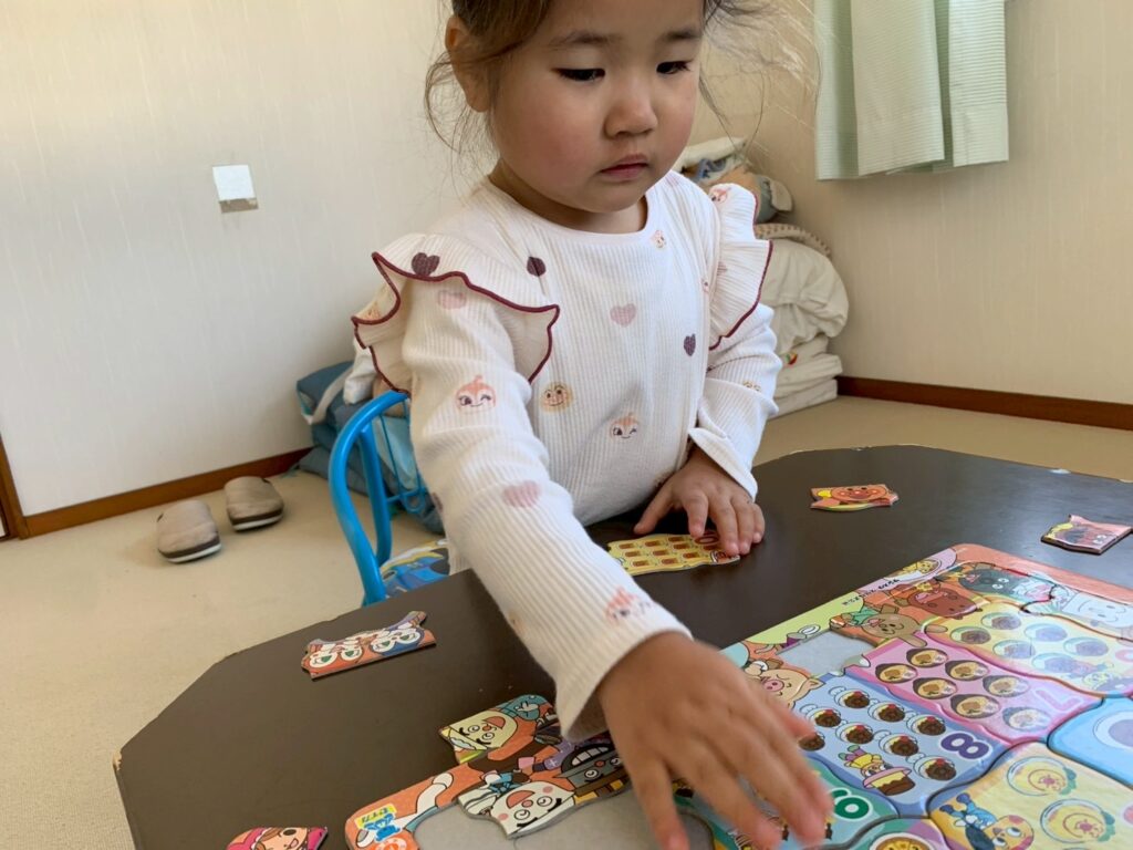 本日の利用:10人(年中2人、年少6人、年少少2人)