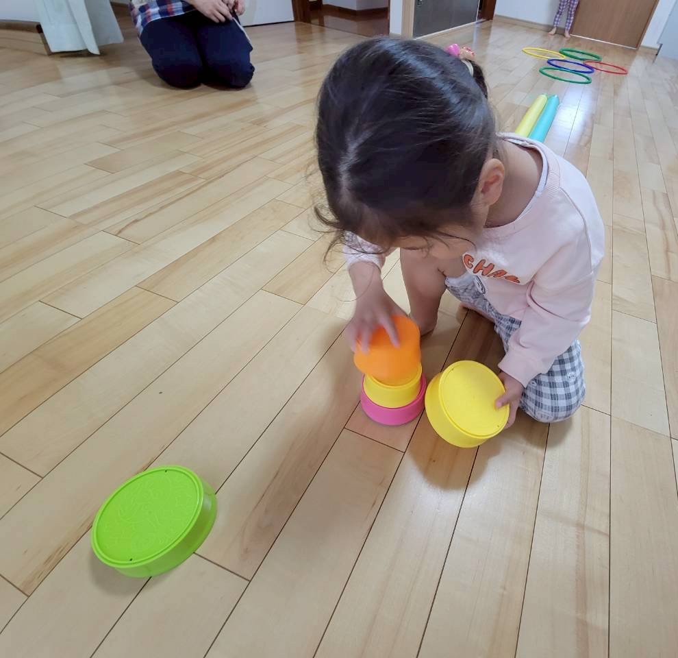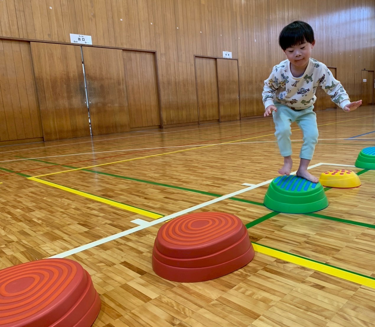 今日の種目は・・・けん・けん・ぱ、一本橋、カップタワー、ボール投げ、風船タッチ
