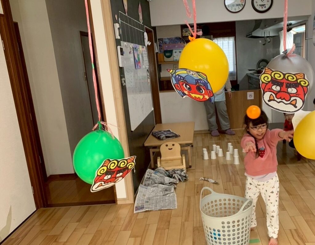 今日は節分!!節分サーキットと豆まき会をしたよ!鬼の風船にボールを当てて!鬼のピンでボーリング🎶サーキトでも鬼退治が出来たよ!その後は鬼登場!!とっても怖かったね💦でもみんなで「鬼は外ー!!」って追い払うことが出来たよ!!!