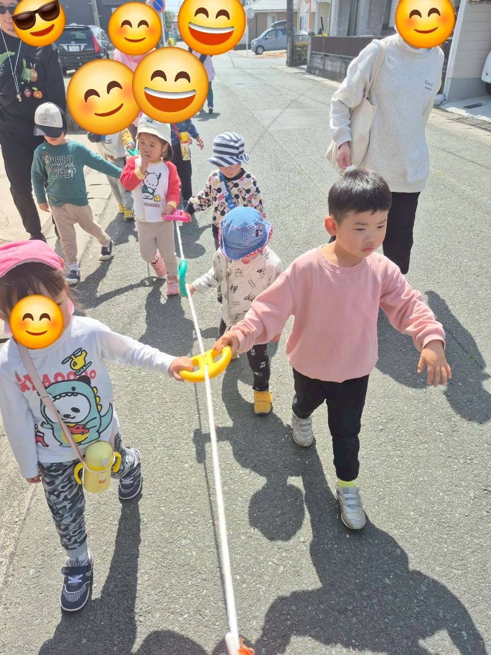 今日はお散歩ロープを使って安松第1公園にいったよ!遊ぶ前に、すべり台にジャングルジム、ブランコと順番にトライしだんだ!みんな、頑張ったよ!