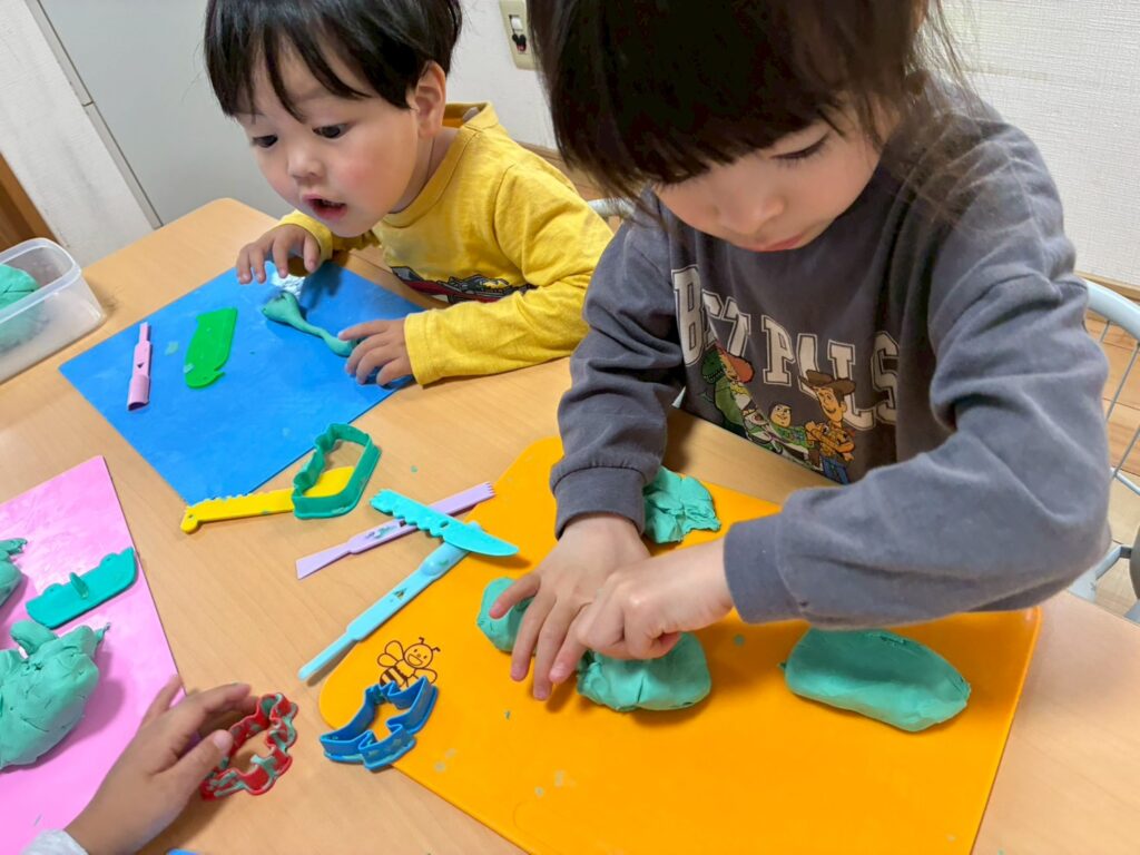みんな大好き近くの公園に遊びに行って来たよ♪ポカポカ春陽気の中で虫を見つけたり、広場を思いっきり走ったり…遊具にもいろいろチャレンジ!午後はたくさんの泡の感触を楽しんだ後は粘土をちぎったりこねたり…リラックスして過ごしたよ☺