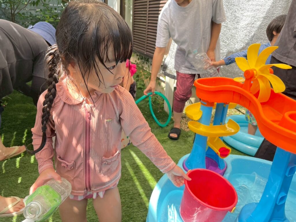 今日は水遊びにお勉強に…盛りだくさんの1日でした♪午後はお部屋で魚釣りゲームもしたね🐡