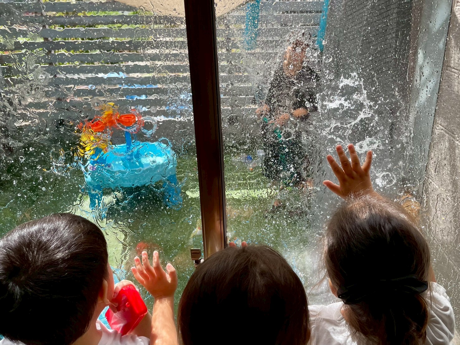 水遊びでは泡遊び、氷遊びを楽しんだよ♪カップから氷を出したら、先生やお友達の手や足にピトッ!ひんやり冷たくて気持ちよかったね😊