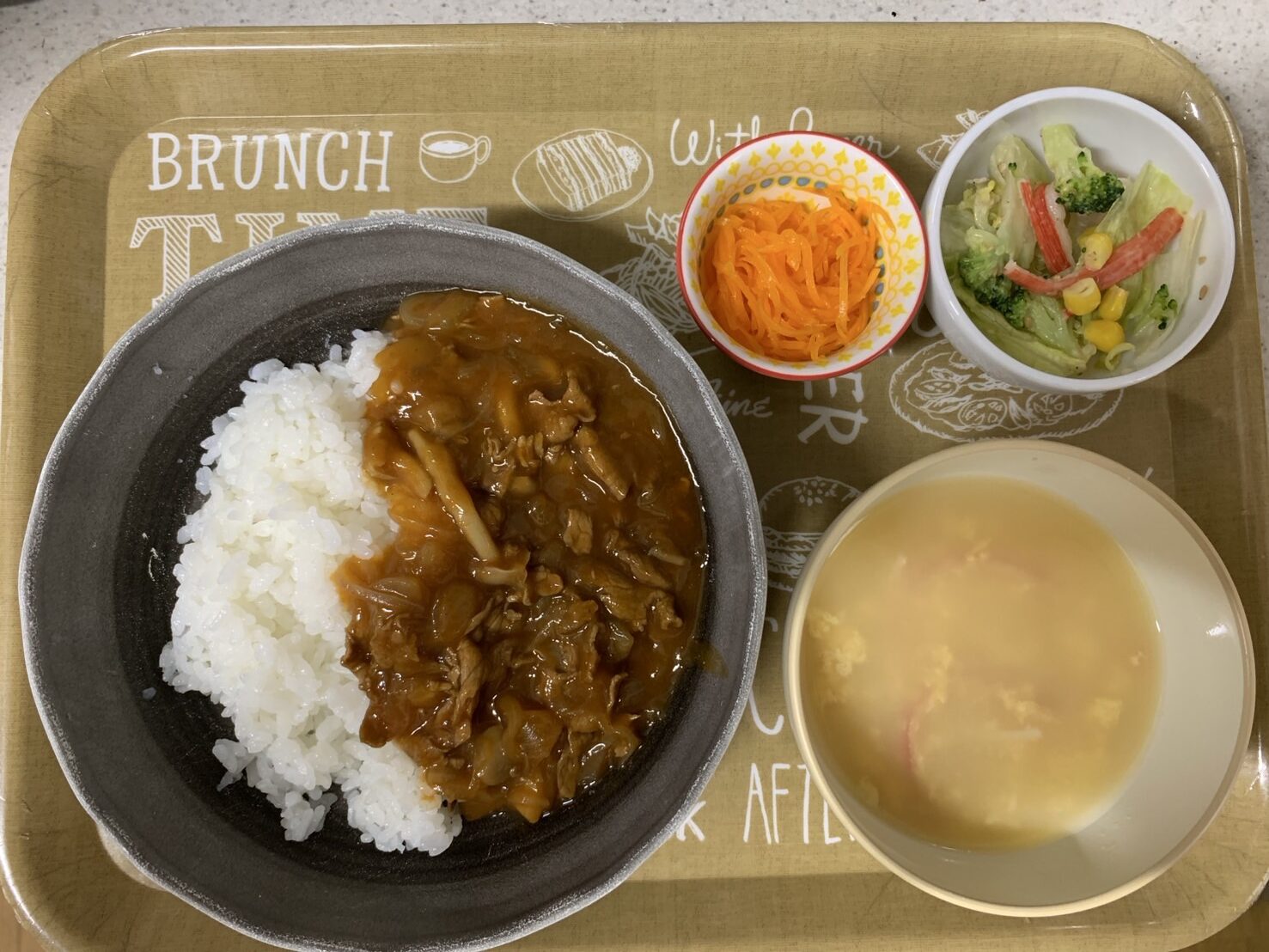 やきそば・わかめと豆腐の味噌汁・人参シリシリ・タ...