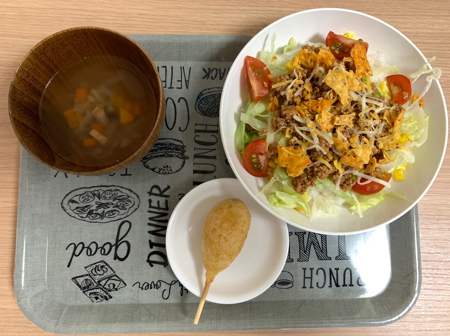 やきそば・わかめと豆腐の味噌汁・人参シリシリ・タ...