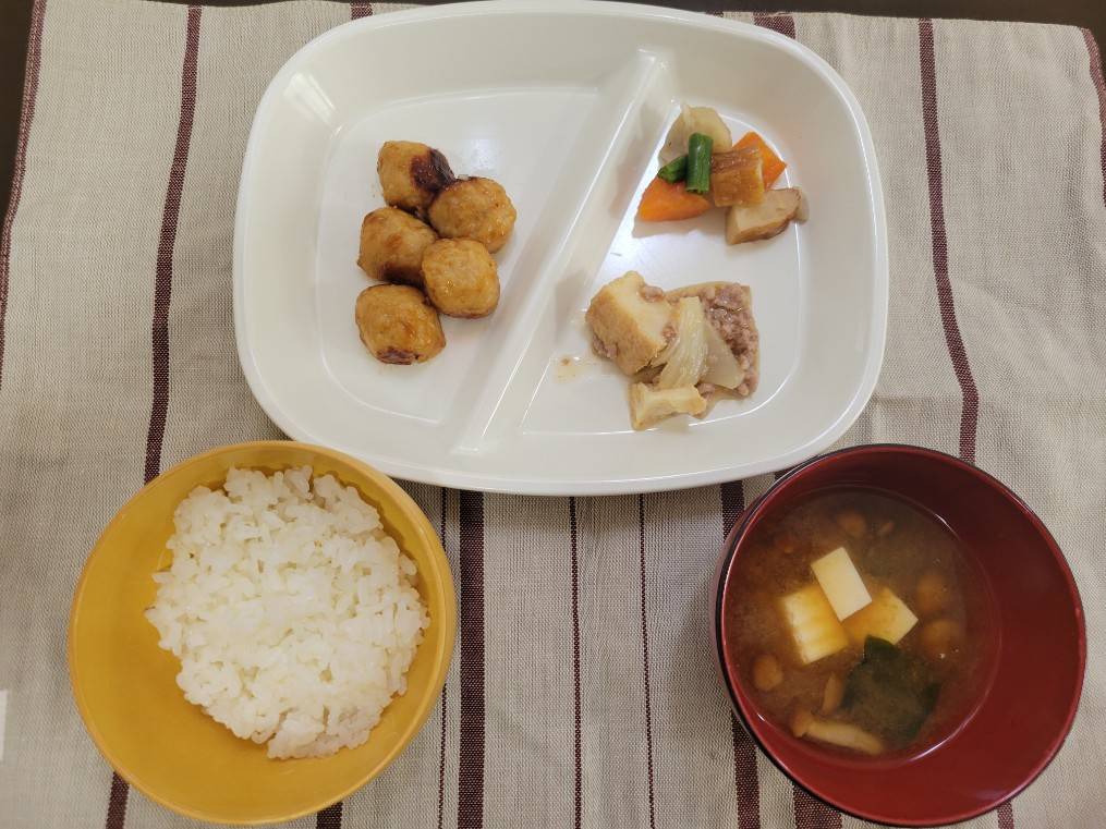 ご飯・具だくさんのワンタンスープ・厚揚げと大根の...