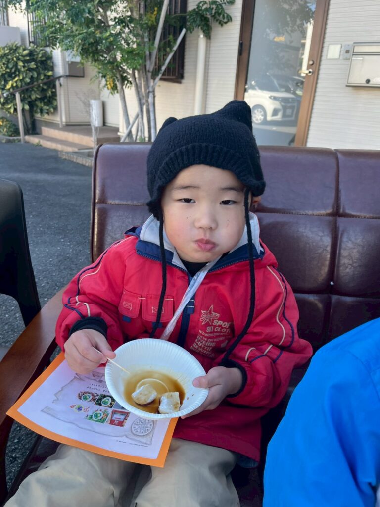 今日は、今年最後のPOPOさんでの活動でした。みんなでネイチャーゲームをしながら、ēコードさんのお餅つき体験へ!!ミッションカードを持って、6つの探し物を全力で頑張りました。お餅つき体験では、大きな杵を持ち上げて「よいしょ、よいしょ」の掛け声と一緒に楽しみました。自分でついて出来たお餅を食べさせてもらい、「美味しい(^▽^)/」の笑顔がたくさんでした。